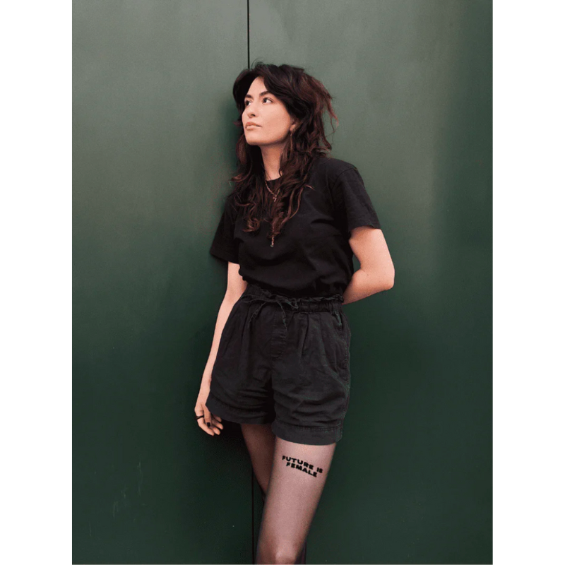 "I wear tights all the time, but none compare to these! The material is very durable, and the rebellious phrases printed on them are the cherry on top. They’ve become my favorites!" - Nina Z.