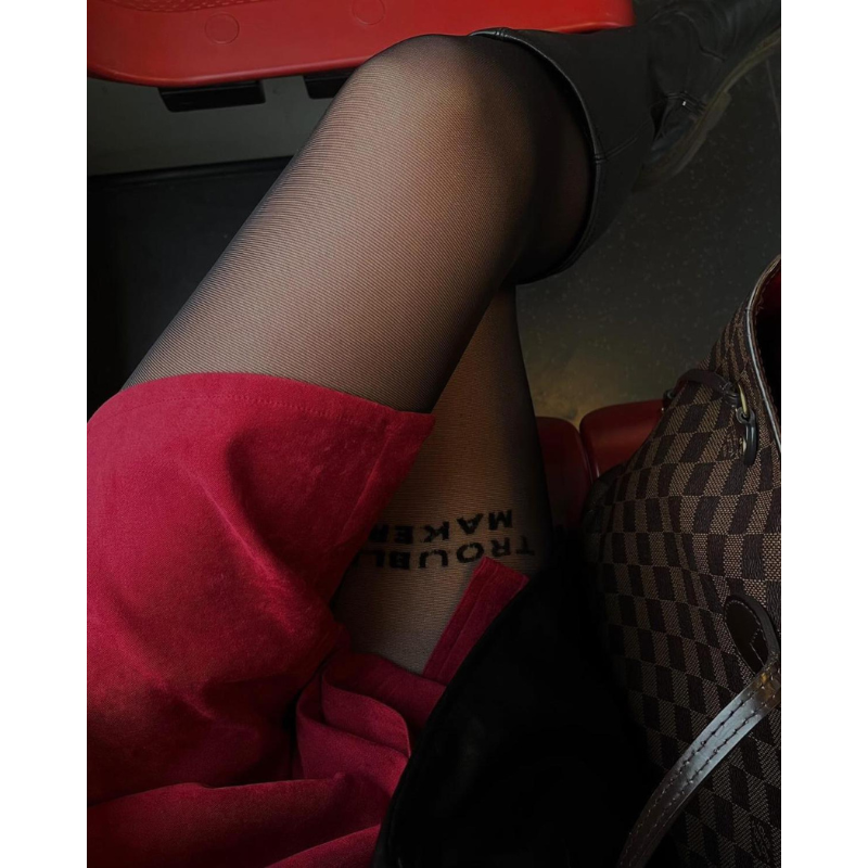 These tights are fantastic! The "Trouble Maker" design is a fun conversation starter, and the quality is top-notch. They fit perfectly and have quickly become my go-to for a night out. Definitely a statement piece!